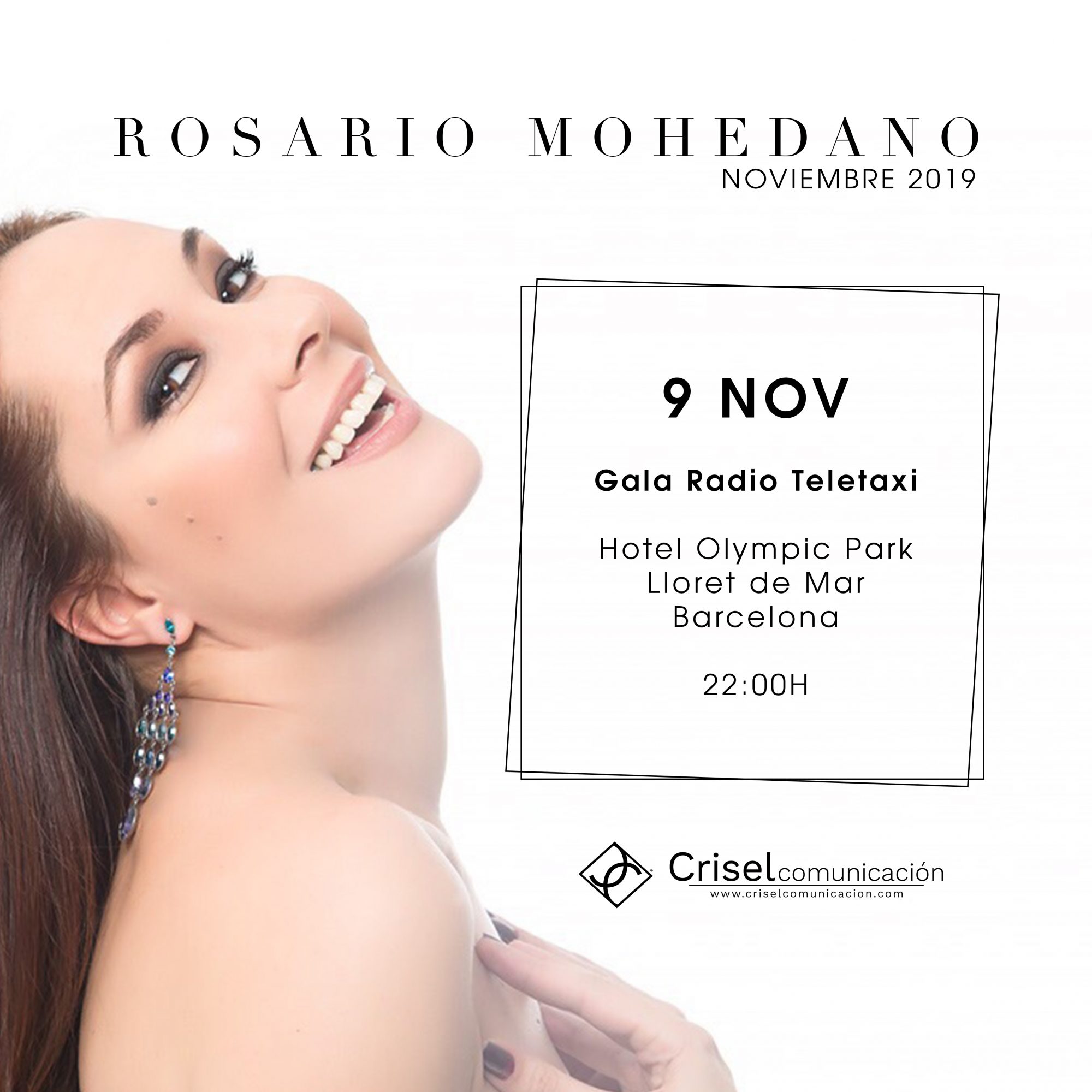 El 9 de noviembre Rosario Mohedano tiene una cita junto a Jonathan Santiago, Gemelos Cortés, y Ana de Caro en la Gala 30 Aniversario de Eli Oro, organizada por Radio Teletaxi en el Hotel Olympic de Lloret de Mar.(Gerona).